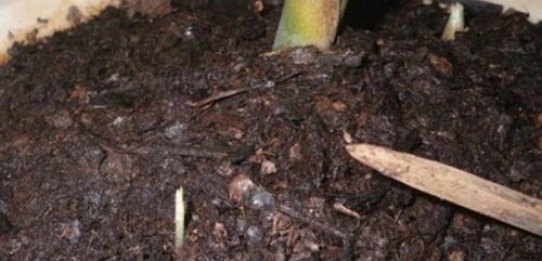 ストックだぶついてるので収穫はせず.冬に枯れた後は水やり要らねんだろか? 大丸鉢#1 続いて第五十三花芽のよーな(ホントか)? 例えればパンダの赤ちゃんみたい.気温下がってきたら室内の方が収穫伸ばせるんぢゃ?