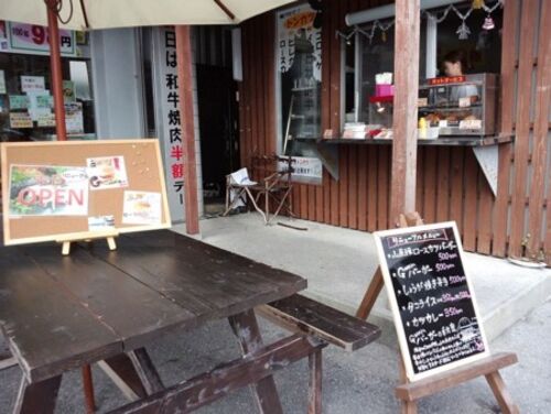 通り掛かると前に何かボード出てるのチラと目に入り気になって見に行くと,本日リニューアルと出てる.おばちゃんから若い姉さんに変わってる(交代で今日たまたまかも知れねが).バーガー,「しょうが焼き弁当」,「タコライス」,「カツカレー」(お安目)等…