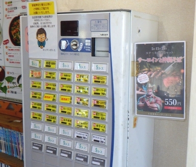ホールの兄さんに云う.10分遅れで入店.50円玉切れてやがる.ステーキたれ無しで発注.新聞確保していつもの小卓一人席.